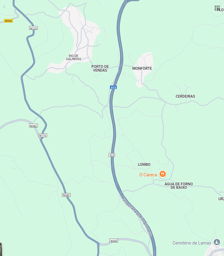 I’ve appended my map photos of my route from just west of Miranda-do-Corvo to the northern section of Rio De Galinhas (Chicken River, but no river in sight and no chickens. I consulted a local, who grinned and said ‘Not in my lifetime, there hasn’t been.’ I suspect he has been asked the same question by ‘outsiders’ before.)